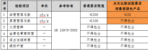 如果衛(wèi)生巾中的微生物指標存在問題,會增加女性月經(jīng)期婦科炎癥的風(fēng)險,危害人體健康,我國《一次性使用衛(wèi)生用品衛(wèi)生標準》(GB15979-2002)中對致病微生物有嚴格要求。本次比較試驗參照《綠色產(chǎn)品評價 紙和紙制品》(GB/T35613-2017)中微生物限值最嚴格的消毒級要求(見下表)考核樣品,結(jié)果顯示,35款樣品均可以達到消毒等級的要求。