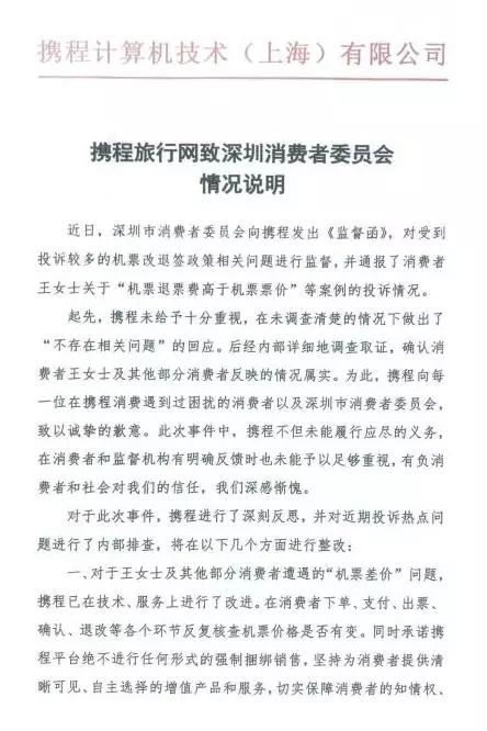 第一,?攜程公司從起初否認存在相關(guān)問題,到今天的公開道歉并提出實質(zhì)性整改措施,從推責(zé)諉過到直面解決,深圳消委會對攜程公司前后態(tài)度和做法的轉(zhuǎn)變給予肯定。