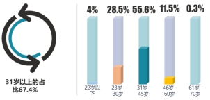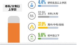本次調(diào)研中,家政公司消費(fèi)者中,31歲-45歲是主要消費(fèi)者,占比55.6%,31歲以上的消費(fèi)者占比為67.4%。;57.4%的受訪者學(xué)歷為本科/大專(zhuān)及以上 。