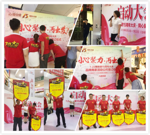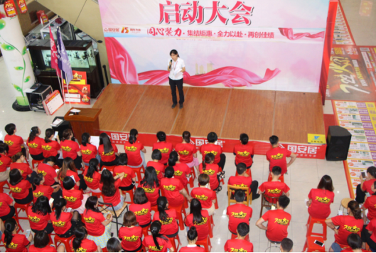 7月3日下午,紅色的T恤覆蓋了國(guó)安居各店商場(chǎng),“7.22國(guó)安居15周年大慶”啟動(dòng)大會(huì)在國(guó)安居各店正式落下帷幕。為確保全員工作執(zhí)行到位,運(yùn)行流暢,國(guó)安居各店店總及各店策劃負(fù)責(zé)人,先后做了本次大慶企劃活動(dòng)及推廣執(zhí)行方案的細(xì)致說(shuō)明,各店參會(huì)的商戶老板、銷售精英及國(guó)安居員工對(duì)此次活動(dòng)的推廣形式與方向感到更加明確了,對(duì)于此次大慶活動(dòng)的開展更是充滿了期待與信心。