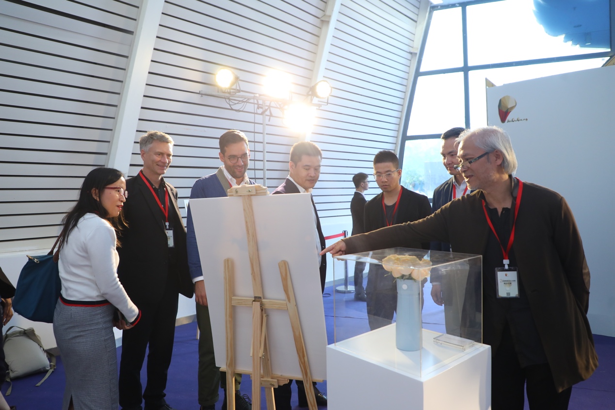 下午一時許,各級領(lǐng)導(dǎo)、評委和嘉賓陸續(xù)抵達會場,并在入口處的簽名墻簽名留念。在工作人員的引導(dǎo)下,他們首先參觀了本屆大獎賽入圍作品展。精致的模型,內(nèi)容詳盡的展板讓所有人在展區(qū)久久徘徊。