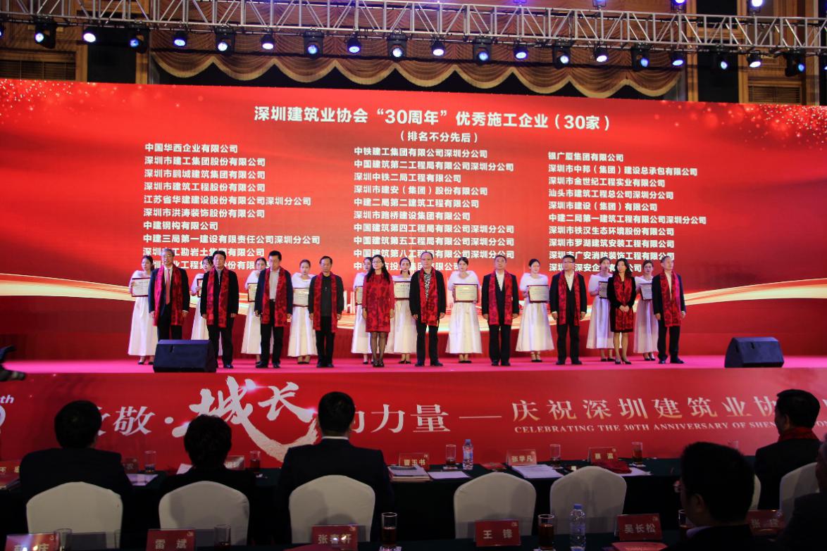 本次慶典上,深圳建筑業(yè)協(xié)會(huì)表彰了一批在促進(jìn)、推動(dòng)深圳建筑行業(yè)發(fā)展中作出重大貢獻(xiàn)的優(yōu)秀企業(yè)和個(gè)人,鼓勵(lì)他們不斷探索創(chuàng)新,共同創(chuàng)造深圳建筑業(yè)的輝煌。深圳市建被授予“30周年優(yōu)秀施工企業(yè)”;翠林投資集團(tuán)董事長(zhǎng)王忠明榮獲深圳建筑業(yè)協(xié)會(huì)“30周年優(yōu)秀企業(yè)家”稱(chēng)號(hào);深圳市建員工盧燦光、郝崇民榮獲“30周年優(yōu)秀項(xiàng)目經(jīng)理”稱(chēng)號(hào);深圳市建老員工李炳坤榮膺“30周年優(yōu)秀工匠”稱(chēng)號(hào)。