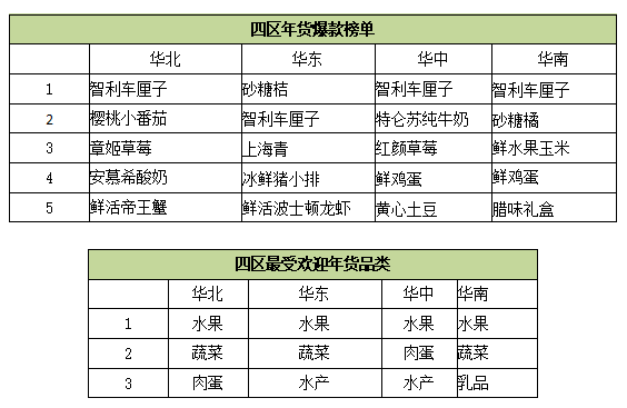 在已經(jīng)上線的每日優(yōu)鮮的華南年貨頻道里,水果、肉蛋、酒水等品類(lèi)占據(jù)“大半壁江山”,特別是高端水果,占比從去年的20%提升到50%,最受喜愛(ài)的有車(chē)?yán)遄印⑸仙虾炆疤墙?,此外受華南人民歡迎的年貨還包括雞蛋、箱裝牛奶和零食大禮包等。