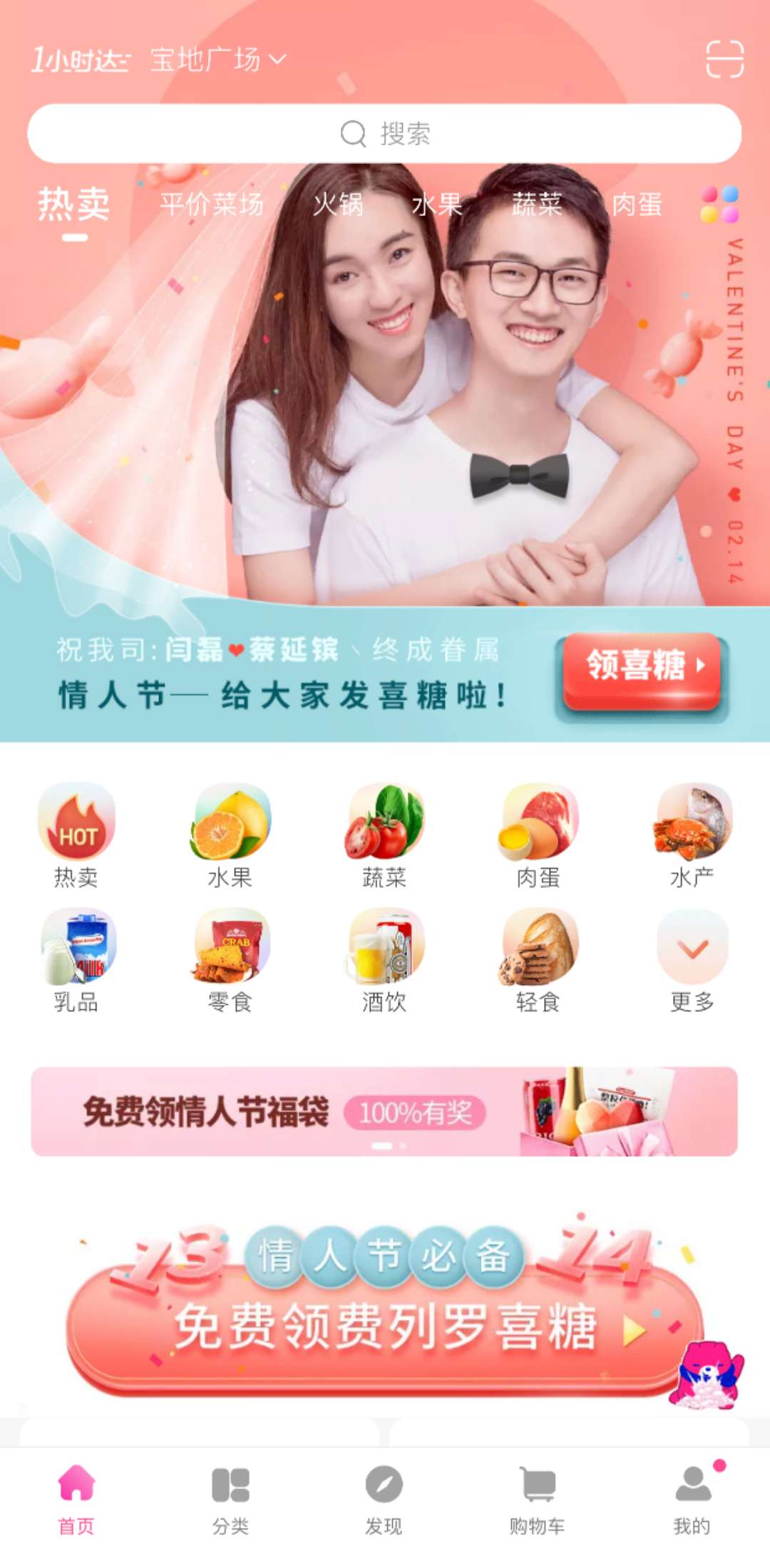 2月13-14日,廣州、深圳地區(qū)每日優(yōu)鮮用戶登錄每日優(yōu)鮮APP首頁(yè),便看到兩位新人的甜蜜的結(jié)婚照,讓大家非常意外。