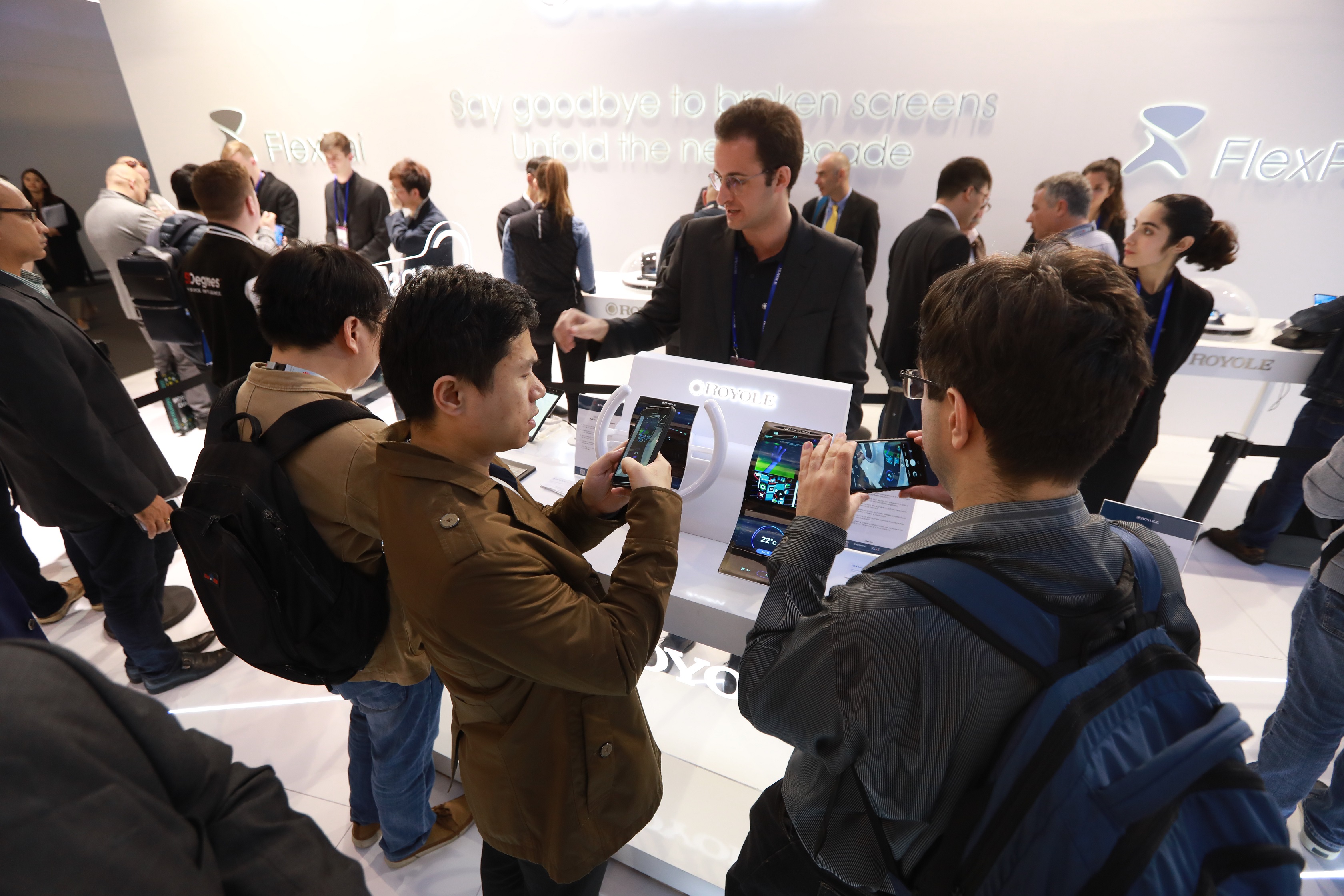 折疊屏手機作為今年MWC的熱點之一。柔宇科技現場展出一大批全球首款可折疊柔性屏手機FlexPai柔派,沒有玻璃柜緊鎖,沒有高大安保人員嚴密看管,參展客戶可在柔宇展位隨意上手體驗折疊屏手機柔派的多種功能,多次折疊、鏡像拍照、大屏游戲等等均可自由嘗試。