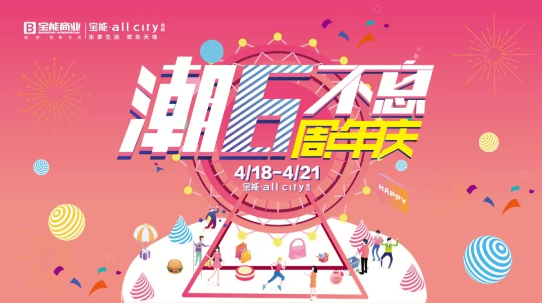 據(jù)悉,為回饋顧客多年來的支持,4月18日-21日期間,龍崗寶能·all city舉行了六周年慶系列主題活動,10000份禮品免費送、拼手氣抽華為P30Pro及小米酷炫卡丁車套件等好禮、萬元現(xiàn)金紅包雨準點搶、大眾點評/美團30團50元代金券、餐飲5折起,零售3折起等,更有超多免費大禮送給市民朋友。同期,商場還聯(lián)合寶馬mini車友會打造的后尾箱市集受到顧客的喜愛。項目還傾力打造浪漫摩天輪、甜蜜花路、馬卡龍色棒棒糖等網(wǎng)紅拍照場景,得到聞訊而來市民的一致好評,有市民表示,在這些場景前拍照,讓自己成為了朋友圈的“吸睛王”。豐富的活動也極大帶動了銷售,較去年同期增長超20%。整個周年慶活動在“潮6不息”生日慶典中迎來了高潮。