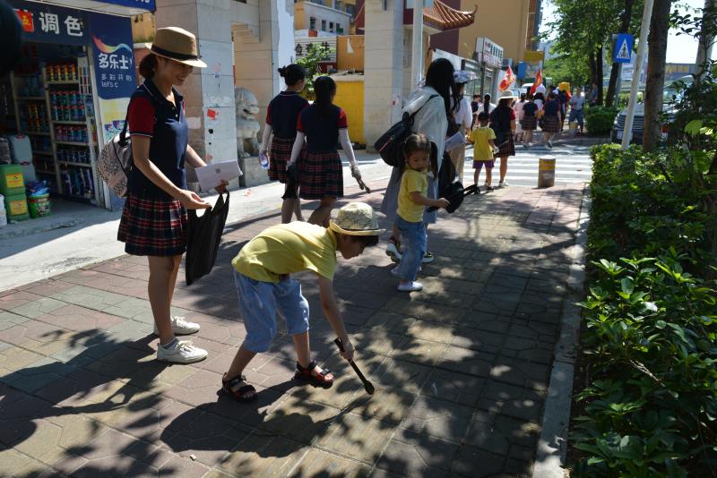 上午9點多,慈善小天使和志愿者們,從橫崗華明星幼兒園開始,沿著華西村和志健廣場等橫崗片區(qū),一路清撿道路垃圾和與路人合影宣導,向過往市民分發(fā)“垃圾不落地”資料,宣傳環(huán)保知識。特別支持的市民,小天使們派發(fā)了棒棒糖這一他們最好的感謝禮物。