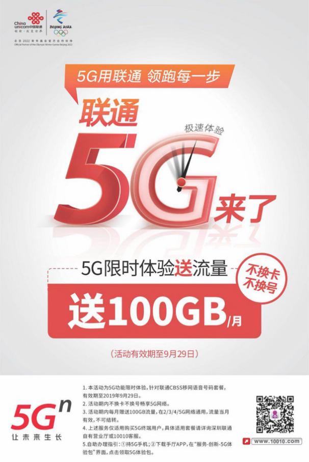 選購5G手機時或許您仍存疑慮,5 G流量資費究竟如何?為配合5G手機發(fā)售,深圳聯(lián)通特別推出“月送100G B流量,5G限時體驗活動”。自8月起,凡通過正規(guī)途徑購買5G商用手機(具有正規(guī)發(fā)票)的用戶,不換卡不換號,即可領(lǐng)取一次聯(lián)通5G流量體驗包,免費體驗5G網(wǎng)絡(luò)。具體操作流程是使用5G手機登陸“中國聯(lián)通手機營業(yè)廳”APP,通過“服務-創(chuàng)新-5G體驗包"點擊領(lǐng)取。在線下,用戶也可持本人身份證及5G手機,前往聯(lián)通營業(yè)廳現(xiàn)場領(lǐng)取,領(lǐng)取后流量包立即生效,可享受最高1Gbps的5G速率體驗,流量包將在9月底自動失效。