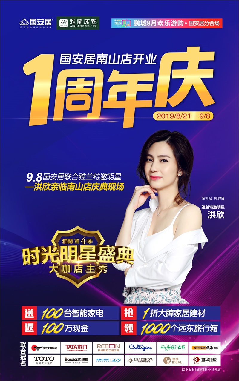 據(jù)了解,這場8月21日持續(xù)至9月8日的周年慶典,南山國安居為業(yè)主朋友們準(zhǔn)備了八大鉅惠:1、【重磅】一鳴驚人——狂送100臺智能家電:活動當(dāng)天,憑9月8日當(dāng)天累計訂單(可多個品牌下定)實付滿30000元以上即送智能家電一臺,100臺小米液晶電視、小米洗烘一體機等你搬回家!越早下單獎品越大!送完即止!