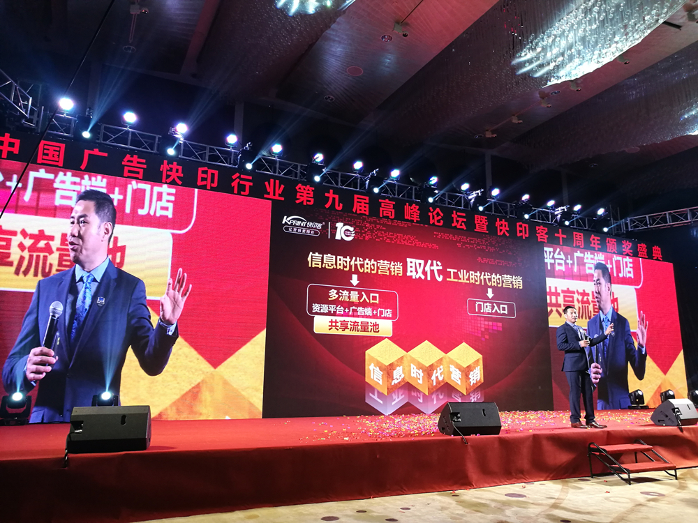 K-Print河南新鄉(xiāng)旗艦店崔總做“K-Print,共創(chuàng)廣告策劃行業(yè)美好新明天”主題演講。崔總分享了他與KP店結(jié)緣的故事,依托KP店重塑企業(yè)品牌,運(yùn)用“互聯(lián)網(wǎng)+技術(shù)營(yíng)銷(xiāo)”創(chuàng)新模式推動(dòng)企業(yè)及行業(yè)的轉(zhuǎn)型與創(chuàng)新,為廣告快印企業(yè)鋪就了一條騰飛美好明天的快車(chē)道。