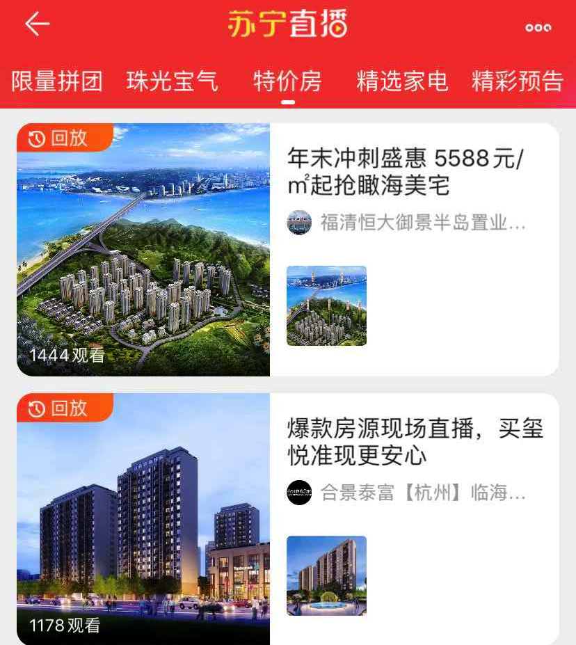 為了讓購房者更快速、更直觀、更真實(shí)的查看在售樓盤信息,雙十二特價(jià)房上線之后,蘇寧直播舉行了上百場看房直播,讓眾多的購房者眼見為實(shí),通過直播鏡頭,了解意向房源的真實(shí)情況。