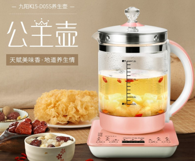九陽(yáng)(Joyoung) K15-D05S養(yǎng)生壺食品級(jí)高硼硅玻璃粉紅色