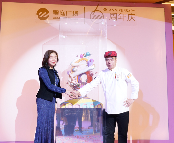 此次六周年的生日蛋糕是由世界西點大師兼ANGSI昂司西點研發(fā)總監(jiān)林紹特別為深圳皇庭廣場慶生的匠心之作。蛋糕靈感來自浩瀚銀河系,香甜奶油通過水晶柱環(huán)繞著彩色數(shù)字6,寓意著皇庭廣場6年來致力于為顧客提供貼心服務(wù)的宗旨。緊貼在數(shù)字6之上的彩色水晶球,包裹著來自時尚、數(shù)碼等不同潮流領(lǐng)域的產(chǎn)品,水晶球之間相互輝映,閃耀著各自時尚的魅力,傳遞對生活的美好追求。