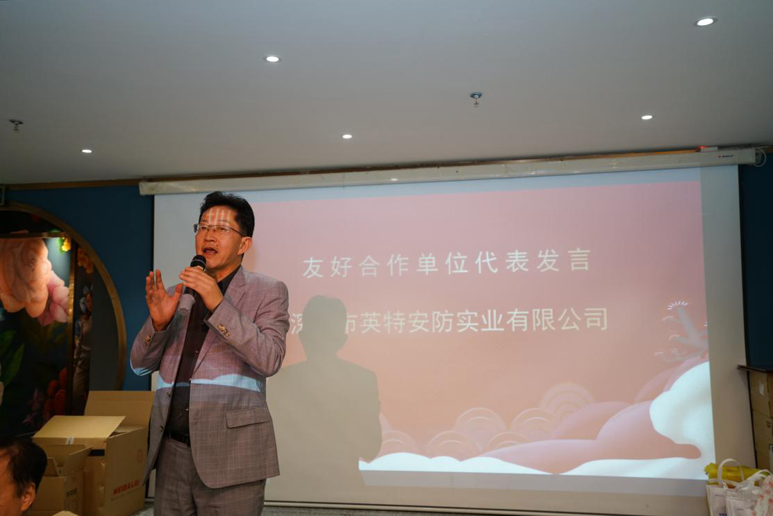晚宴上,學會表彰了6家友好合作單位以資感謝支持,并邀請了其中的來自深圳市英特安防實業(yè)有限公司閆建國總經(jīng)理代表發(fā)言。