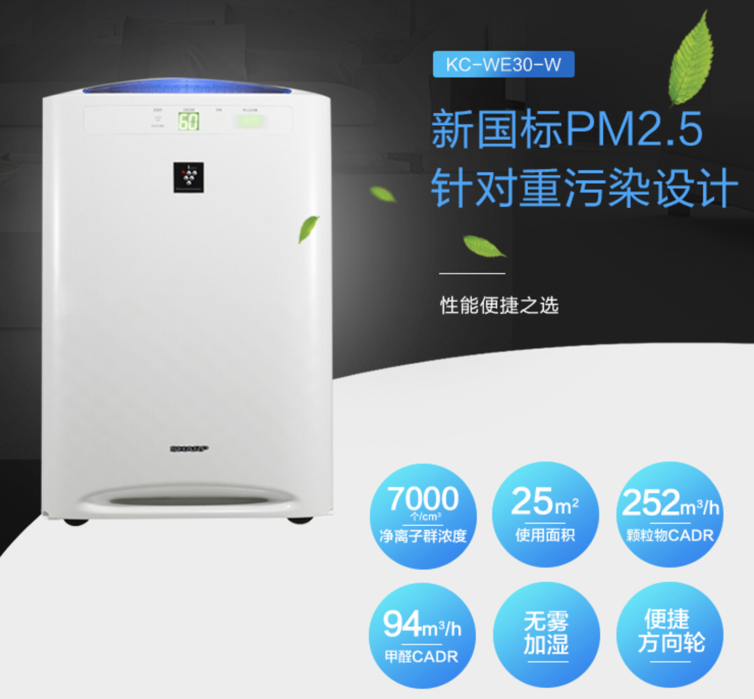 夏普 KC-WE30-W采用的是簡潔大方的外觀設(shè)計,產(chǎn)品尺寸為393mm*270mm*603mm,凈離子群結(jié)合濾網(wǎng)的凈化方式,能夠有效去除甲醛,PM2.5以及其他有害細微顆粒物。這款產(chǎn)品具備特有的凈離子群空間凈化技術(shù),對霉菌和病毒的殺滅有很大幫助,最后離子會形成水返回到空氣中。
