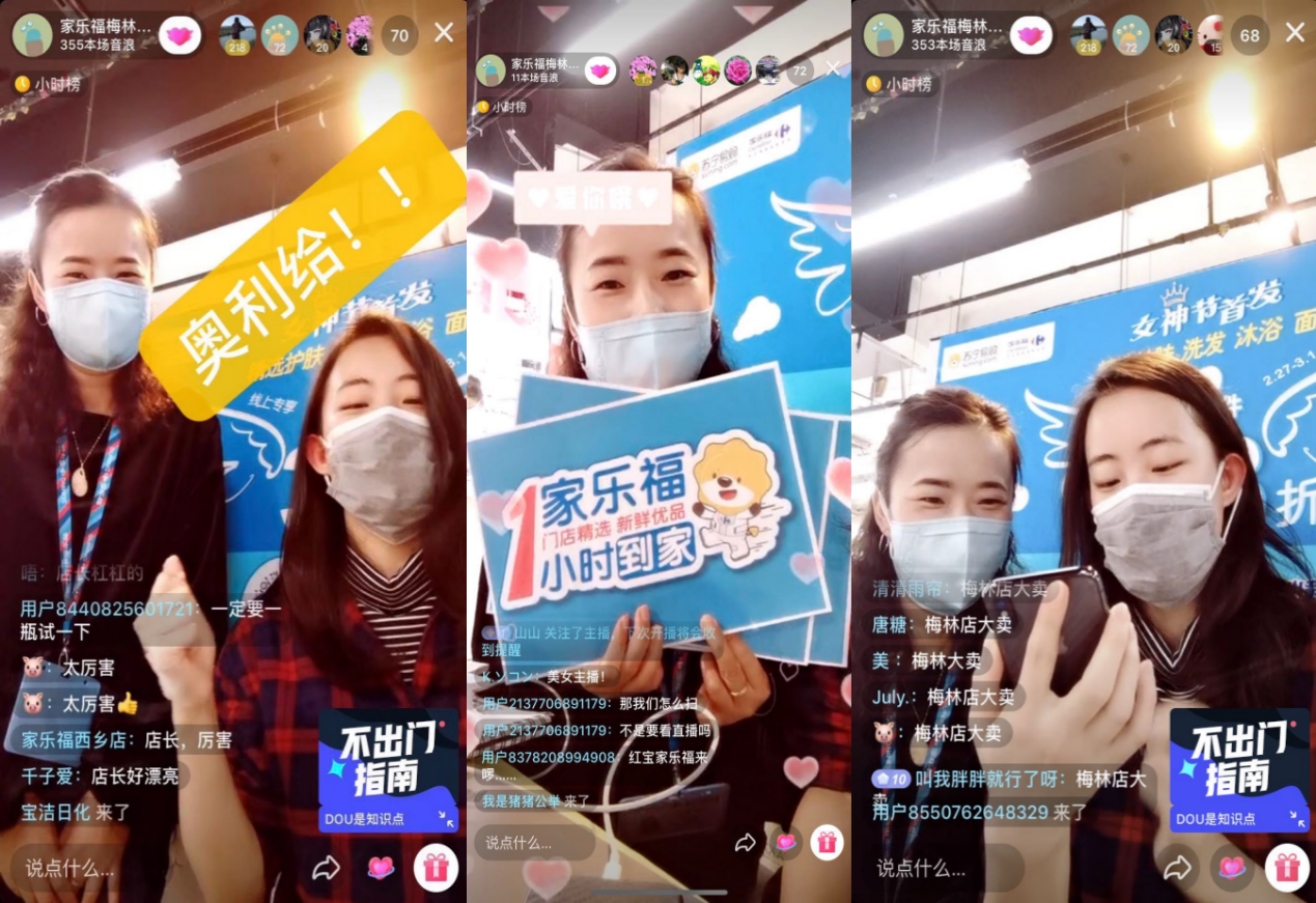 蘇寧家樂(lè)福華南區(qū)相關(guān)負(fù)責(zé)人告訴我們,袁野已經(jīng)成為家樂(lè)福的明星主播。2月8日袁野做的“直播帶貨”是蘇寧家樂(lè)福全國(guó)首場(chǎng)直播,一直到最近的2月29日歡樂(lè)大促直播,圍觀粉絲突破十萬(wàn)更是振奮人心。目前,蘇寧家樂(lè)福華南區(qū)各城市均已推選出優(yōu)秀門店代表進(jìn)行“直播帶貨”。此外,家樂(lè)福還與多家大牌供應(yīng)商合作推出專場(chǎng)秒殺活動(dòng),像2月27日,家樂(lè)福深圳梅林店和家樂(lè)福廣州康王店在抖音平臺(tái)上線的“蘇寧家樂(lè)福&寶潔女神節(jié)首發(fā)直播秒殺”活動(dòng),高顏值主播加上店長(zhǎng)親自坐陣,還有新人注冊(cè)福利大放送,使得該場(chǎng)直播直接沖進(jìn)了“抖音小時(shí)榜”。