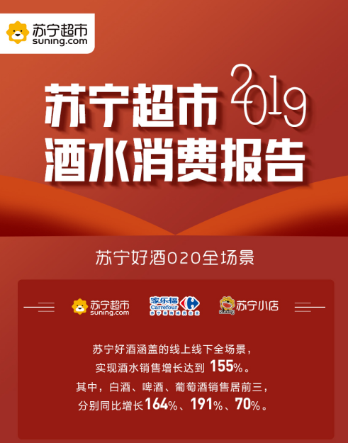 深圳新聞網(wǎng)2020年3月20日訊 昨日,蘇寧超市發(fā)布2019年度酒水消費(fèi)報告。數(shù)據(jù)顯示,2019年,蘇寧好酒全渠道銷售同比增長155%。其中,白酒、啤酒、葡萄酒銷售分別同比增長164%、191%、70%??v觀整年,家樂福、飛天茅臺酒、全場景等成2019年蘇寧酒水關(guān)鍵詞,這也進(jìn)一步凸顯了蘇寧超市酒水生態(tài)圈建設(shè)的卓越成效。