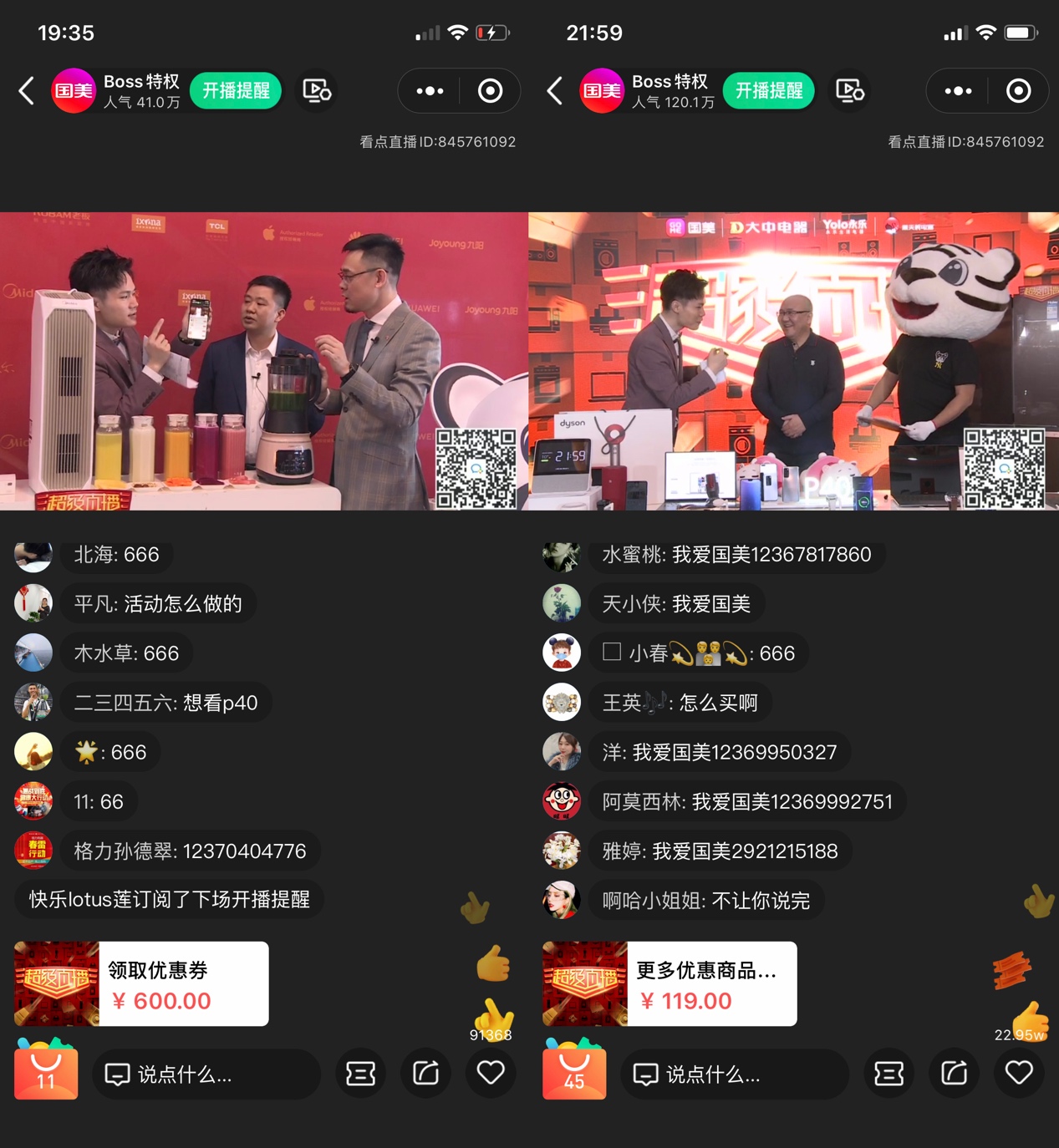 通過持續(xù)不斷地開展直播活動,國美在直播營銷方面已積累諸多經驗,這種經驗也在實踐中為國美帶來了流量與銷售的提升。以近期國美開展的“黑色星期伍”大促為例,活動期間,國美美店社群營銷全國直播活動超千場,美店銷售額同比提升50.9%,銷售單品值提升44.2%,美店流量同比提升18.39%。