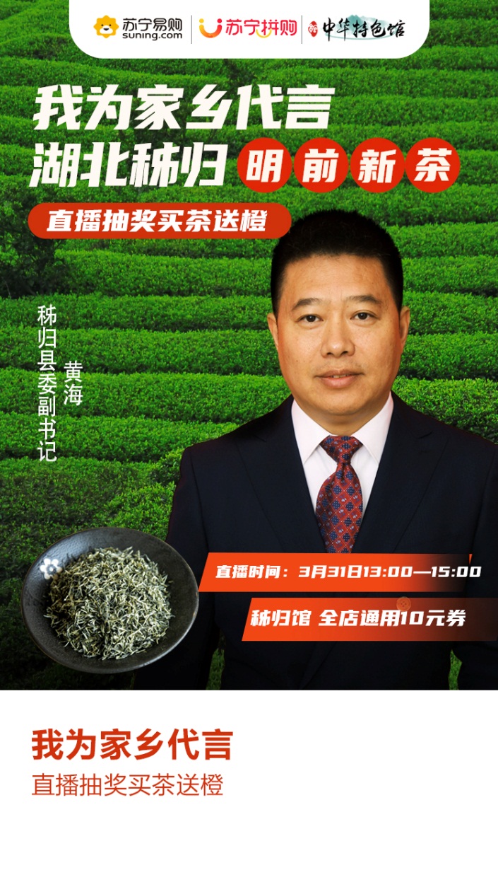 縣長直播帶貨已成風潮,其中誕生了不少網(wǎng)紅案例。3月31日,蘇寧拼購將邀請湖北秭歸縣縣委副書記黃海亮相直播,為全網(wǎng)消費者帶來地道的秭歸農(nóng)產(chǎn)品。