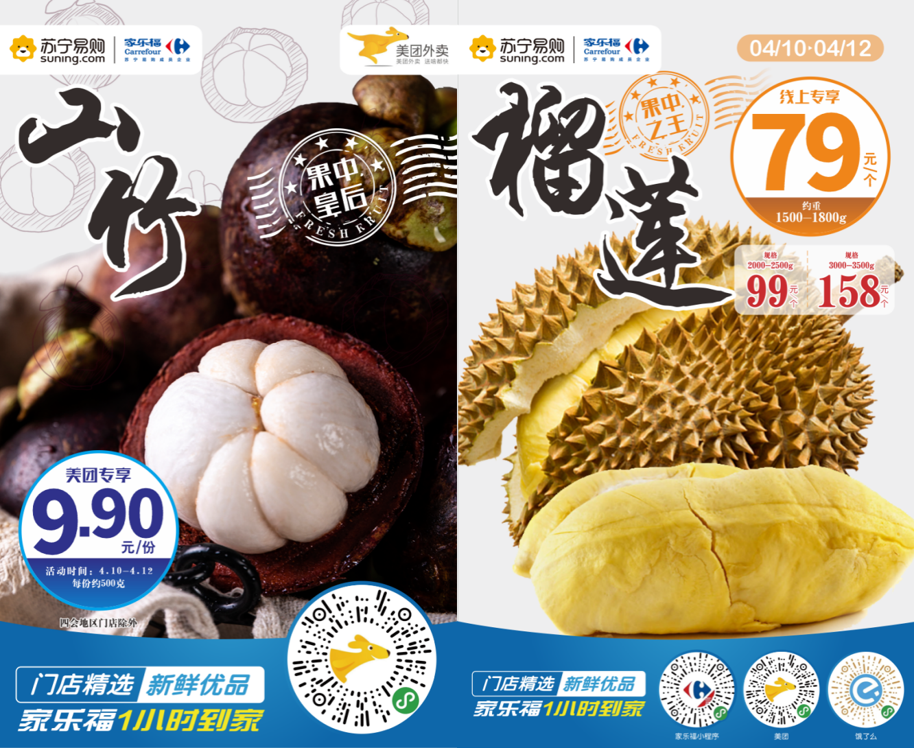 此外,周末還有另外兩款生鮮爆品必須安利給小伙伴!4月10日至12日,9.9元/份的山竹搭配79元/個(gè)的榴蓮,華南市民再也不怕大補(bǔ)上火了呢!特別注意的是,優(yōu)惠僅供家樂(lè)福線(xiàn)上專(zhuān)享,“碼”上安排?。▍瞧G 通訊員蔡民婷)