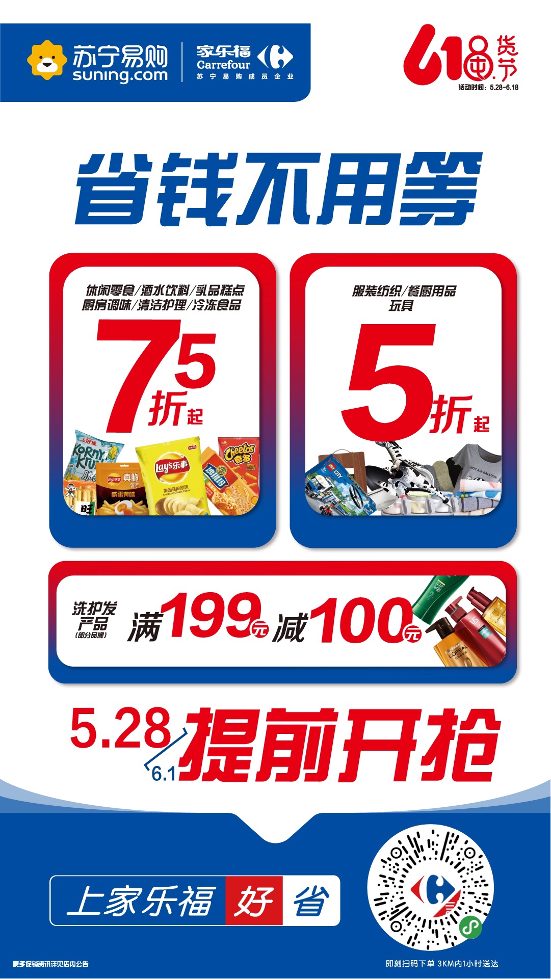 作為蘇寧陣營(yíng)中的排頭兵、蘇寧大快消產(chǎn)業(yè)的核心部分,家樂福率先出戰(zhàn)。為了給消費(fèi)者提供充足時(shí)間選擇心儀的商品,家樂福618囤貨節(jié)即將拉開帷幕,讓消費(fèi)者盡享“618省錢不用等”的升級(jí)購(gòu)物體驗(yàn)。