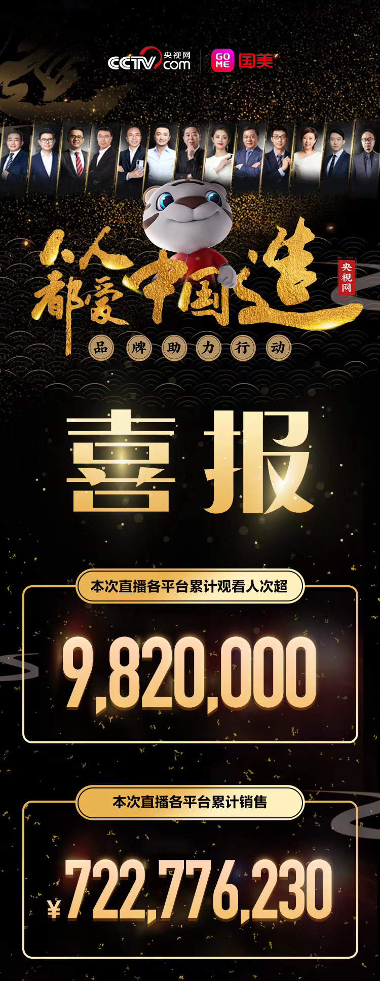 回顧國美近期的幾場大型直播,無論是與“央視Boys”一同創(chuàng)造的5.286億的銷售額,還是“格來美”超級直播5.6億的銷量,以及本場“人人都愛中國造”7.228億的銷售額,都體現(xiàn)了中國零售企業(yè)在促進(jìn)經(jīng)濟(jì)發(fā)展、提升國民生活品質(zhì)的價(jià)值。而在銷量的背后,更是國人對于“中國制造”的認(rèn)可。