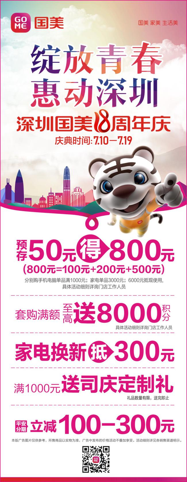 時(shí)間是最好的見證者,萬(wàn)分榮幸我們和辛勤的深圳建設(shè)者一起見證了這座偉大城市的發(fā)展與變遷,深圳無(wú)疑是充滿創(chuàng)造力和奇跡的城市,時(shí)間就是金錢,效率就是生命是這座城市的座右銘。為感謝粉絲們一直以來對(duì)國(guó)美的支持與厚愛,值此18周年大慶之際,深圳國(guó)美于7月10日-19日舉辦了一場(chǎng)“綻放青春,惠動(dòng)鵬城”18周年慶活動(dòng)!