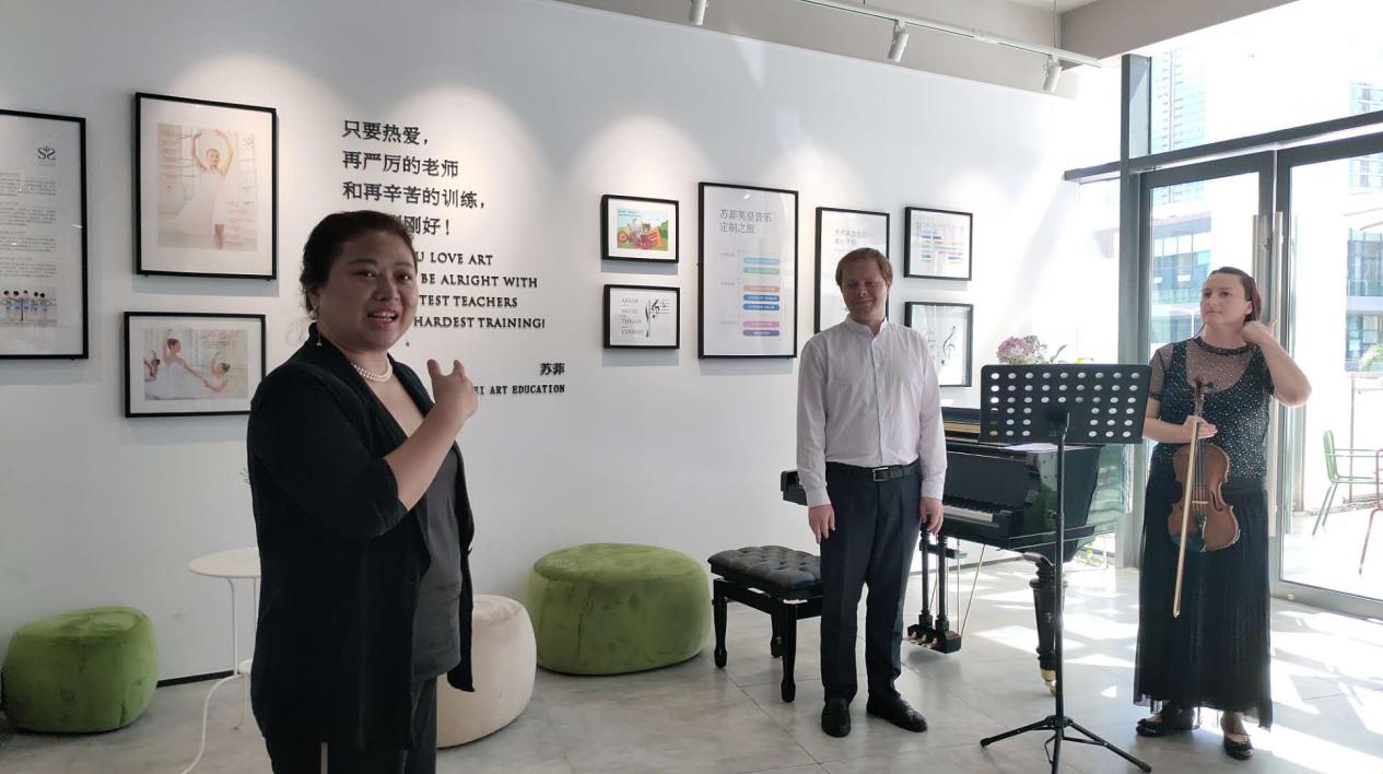在欣賞完來自白俄羅斯的鋼琴老師和小提琴老師帶來《肖邦練習(xí)曲1C大調(diào)》以及《愛之憂傷》、《美麗的羅斯瑪琳》后,可愛的孩子們帶來了一堂“芭蕾舞”教學(xué)示范課,一群僅4、5歲的孩子們在芭蕾舞老師的帶領(lǐng)下,感受芭蕾舞的韻律,學(xué)習(xí)芭蕾舞的基本坐姿以及芭蕾舞的初級分解動(dòng)作。課程中,老師更注重讓孩子理解芭蕾,了解芭蕾禮儀,也運(yùn)用可愛的教具讓孩子們不分散注意力,全神貫注參與到芭蕾舞學(xué)習(xí)當(dāng)中來。 據(jù)了解,蘇菲教育將在中國很小眾的英皇課程普及化,讓孩子在家門口就可以接觸到國際通行與高度認(rèn)可的芭蕾舞和鋼琴課程。作為深圳市英國皇家芭蕾舞和鋼琴的指定考點(diǎn),學(xué)生獲得的證書含金量很高,不但可以在申請國外大學(xué)時(shí)增加入學(xué)學(xué)分,還可以同步享受國外大學(xué)獎(jiǎng)學(xué)金制度。與此同時(shí),蘇菲教育在整個(gè)教育過程始終灌輸“雙語教學(xué)”理念,讓外籍教師與雙語教師用純英文或者雙語授課,為孩子們的“全球化視野”打下基礎(chǔ)。