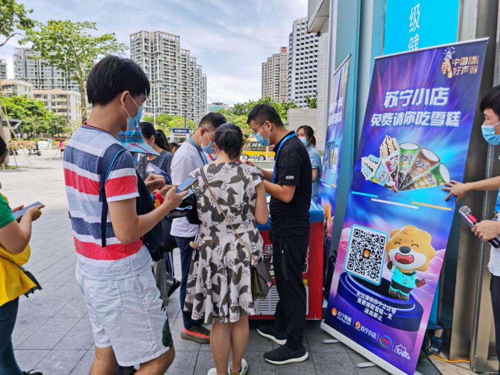 無(wú)獨(dú)有偶,群星廣場(chǎng)蘇寧易購(gòu)門店外的活動(dòng)賽場(chǎng)亦同步在火熱舉行中,7月18日-7月19日,蘇寧聯(lián)合美的一同舉辦中國(guó)好聲音復(fù)賽,活動(dòng)現(xiàn)場(chǎng)熱鬧非凡,做好防疫檢查工作的同時(shí),全力維護(hù)現(xiàn)場(chǎng)治安秩序穩(wěn)定,活動(dòng)現(xiàn)場(chǎng)蘇寧小店展開(kāi)夏日送清涼活動(dòng),免費(fèi)送冰水雪糕,用“清涼一夏”的愛(ài)心之舉,給市民帶去一份夏日關(guān)懷。同時(shí)現(xiàn)場(chǎng)參賽選手三十余位埋藏著夢(mèng)想的音樂(lè)人在舞臺(tái)上縱情燃燒,深情獻(xiàn)唱,將活動(dòng)推向了高潮。一同成就粵港蘇寧十九周年最炫的夜晚。