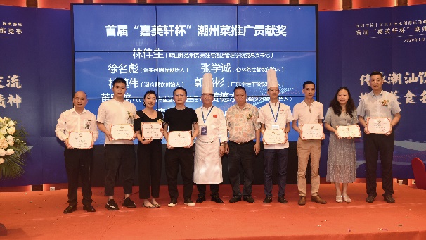 競賽現(xiàn)場菜香四溢,氣氛緊張熱烈,參賽選手各顯神通,“煎、炒、炸、燴”樣樣拿手,每一道工序都嫻熟老道,選手在特色食材、傳統(tǒng)與創(chuàng)新烹制方法、精致拼擺等各方面盡顯匠心。深圳市潮州菜名廚專業(yè)委員會主席、佳兆業(yè)嘉美軒飲食集團廚藝學(xué)院院長邱鎮(zhèn)城及深圳市名廚總會組成的專家評委從菜品的質(zhì)感、味感、觀感、營養(yǎng)衛(wèi)生、創(chuàng)意實用等五個方面對參賽作品進行綜合性評分。活動設(shè)置了深圳市餐飲行業(yè)卓越總廚、精英總廚、杰出總廚等獎項;對優(yōu)勝菜品設(shè)置了深圳市最具潮州菜特色風(fēng)味獎、美食匠心獎、創(chuàng)新美食獎等獎項。中國烹飪大師劉宗桂、中國烹飪大師陳瑜明為一批在深圳飲食行業(yè)堅持工作、推廣潮汕飲食文化的餐飲單位、個人頒發(fā)潮州菜推廣貢獻獎,以此鼓勵參賽選手們傳承匠心精神,攜手推動行業(yè)發(fā)展。
