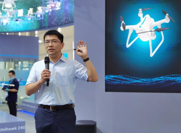 齊俊桐致辭并對敏捷蜂Ⅱ型進(jìn)行精彩形象解讀,“自主化、智能化、集群化”將是無人機(jī)發(fā)展的趨勢。作為新一代集群表演無人機(jī)——敏捷蜂Ⅱ型的重磅首發(fā)是無人機(jī)集群控制技術(shù)領(lǐng)域的一次革命性升級。