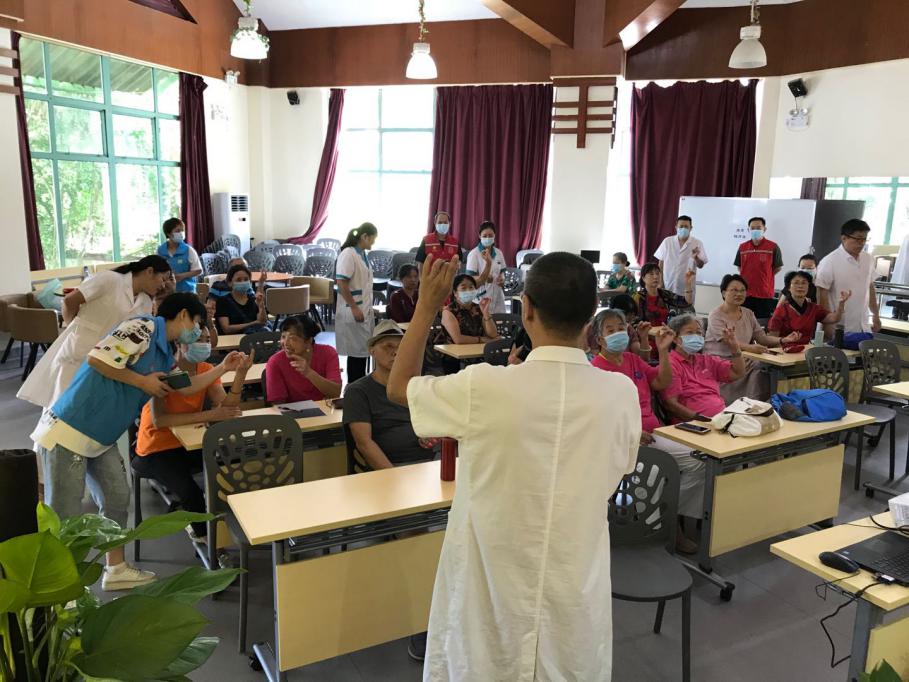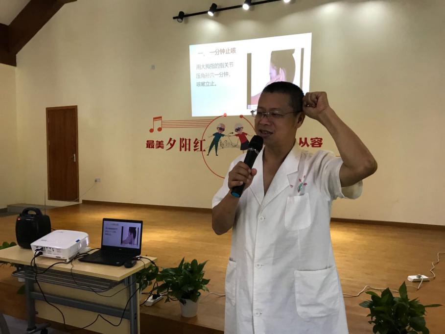 活動(dòng)過程中,全場(chǎng)互動(dòng)和諧有序:老年朋友們仔細(xì)聽講,積極提問,中醫(yī)專家耐心解答,現(xiàn)場(chǎng)手把手教老年人指位法,一分鐘解決疼痛、咳嗽、止喘等技法,現(xiàn)場(chǎng)學(xué)習(xí)、現(xiàn)場(chǎng)體驗(yàn),現(xiàn)場(chǎng)有效,激發(fā)了老年人的興趣,受到了老年人的歡迎。
