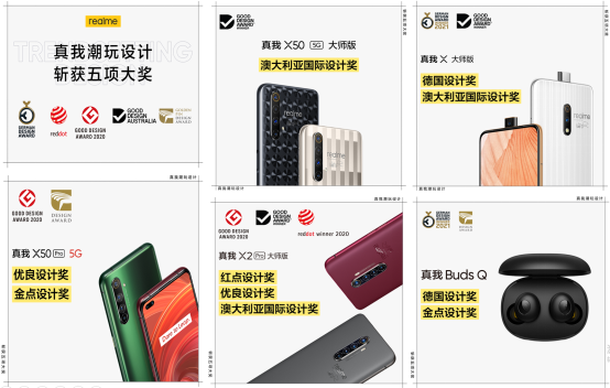 作為科技潮牌,realme真我一直堅持潮玩設計理念,將潮流文化帶入科技圈,不斷探索工業(yè)設計領域的更多可能性,持續(xù)為用戶帶來獨具風格的潮玩設計。也因此,realme旗下多款產品斬獲日本優(yōu)良設計大獎、紅點設計大獎金點設計獎、德國設計獎和澳大利亞國際設計獎5項國際頂級設計大獎,realme的潮玩設計在國際范圍內贏得了高度認可。