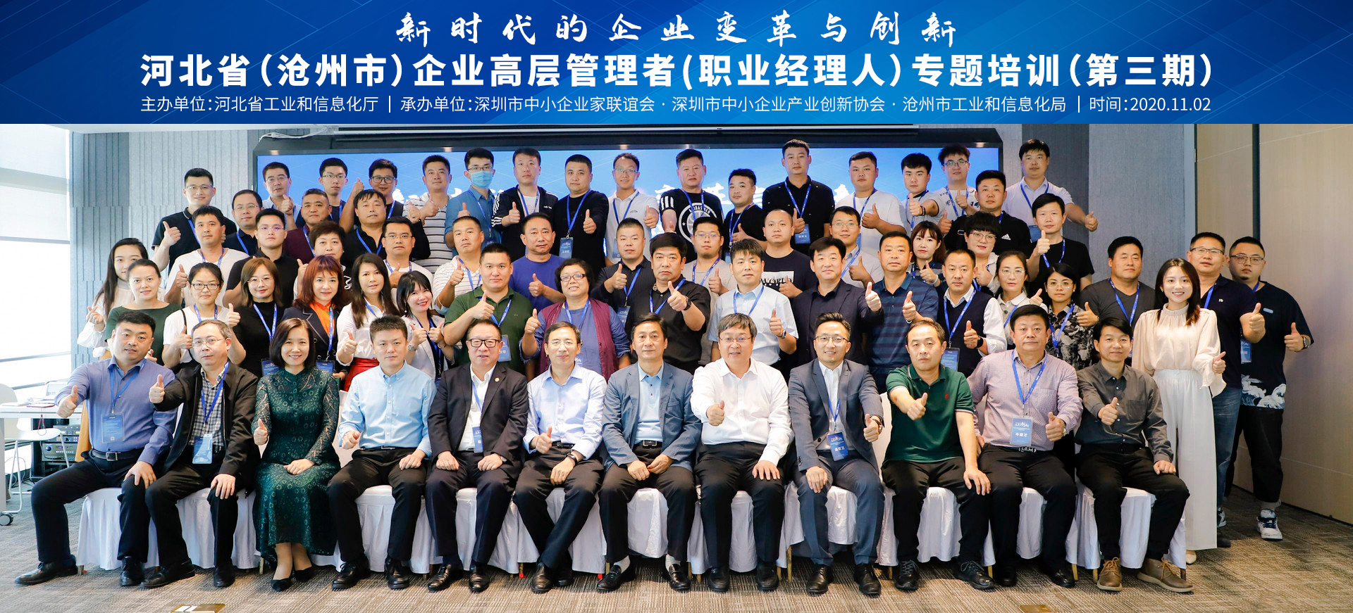 見圳客戶端·深圳新聞網(wǎng)2020年11月9日訊 近日,由河北省工業(yè)和信息化廳主辦,深圳市中小企業(yè)家聯(lián)誼會(huì)、深圳市中小企業(yè)產(chǎn)業(yè)創(chuàng)新協(xié)會(huì)、滄州市工業(yè)和信息化局承辦的“新時(shí)代的企業(yè)變革與創(chuàng)新——河北省中小企業(yè)高層經(jīng)營(yíng)管理者(職業(yè)經(jīng)理人)專題培訓(xùn)(滄州班)”在深圳隆重開班。來(lái)自滄州市產(chǎn)業(yè)集群龍頭企業(yè)、優(yōu)秀民營(yíng)企業(yè)、“專精特新”企業(yè)、培育擬上市企業(yè)的董事長(zhǎng)、總經(jīng)理等共計(jì)56人參加培訓(xùn)。