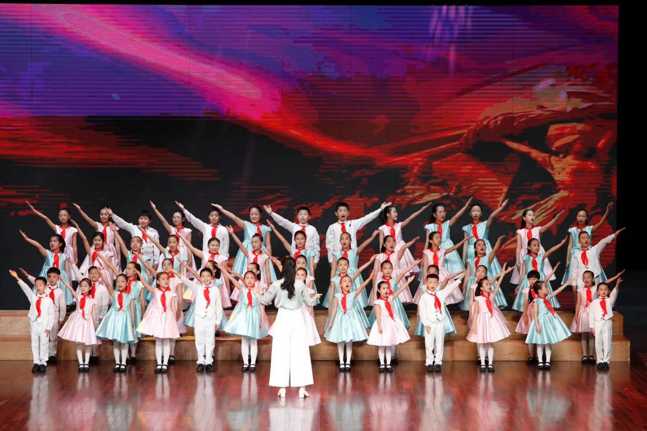 篇章三的主題是心向祖國,合唱曲目有澳門青少年聲樂藝術(shù)協(xié)會的小組唱《星星火炬更燦爛》、深圳市少年宮合唱《迎著太陽唱太陽》、羅湖區(qū)港人子弟學校表演唱《我愛你中國》、福田區(qū)福田小學合唱《少年中國夢》、鹽田區(qū)外國語小學合唱《愛我中華》,表達粵港澳青少年一心向黨,熱愛祖國的美好情感,讓在場觀眾愛國之情油然而生。