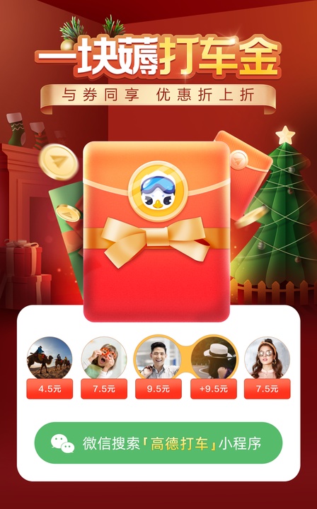 本次“1塊出發(fā)日”,高德打車將在微信小程序推出“一塊薅打車金”活動。用戶進入高德打車微信小程序,將獲得1個隨機金額打車金禮包,用戶將禮包分享給好友,好友點擊即可獲得打車金。禮包內所有打車金均被好友領取完畢后,分享人將隨機獲得與其中一位好友等額的打車金獎勵。每個用戶可多次參與活動,活動期內預計最高可得500元打車金。