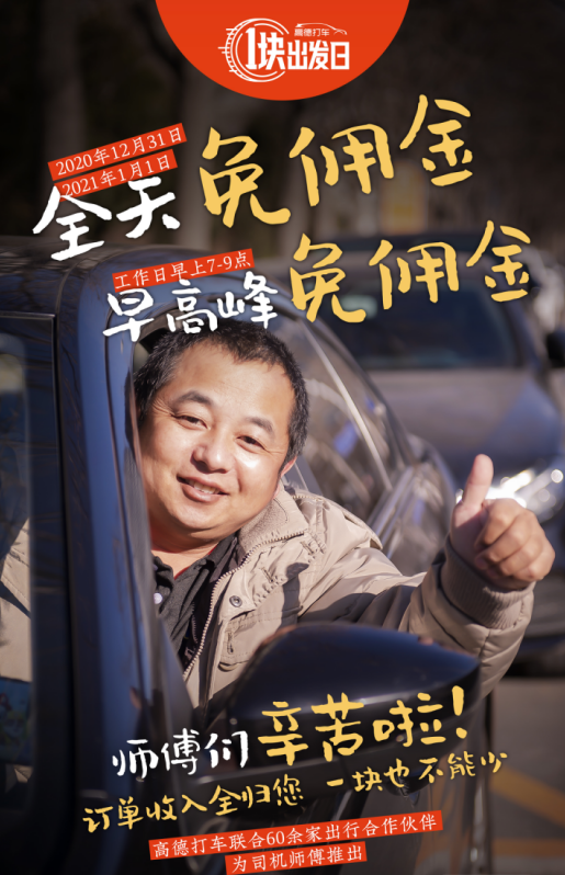 高德打車大數據預計,2020年12月31日、2021年1月1日跨年兩日,將成為全年打車的又一高峰。為了讓司機多勞多得、安心跨年,讓乘客跨年出行打車更快,高德打車聯合60多家出行合作伙伴推出“跨年兩天全天免傭金”活動,乘客付多少司機就能收入多少。
