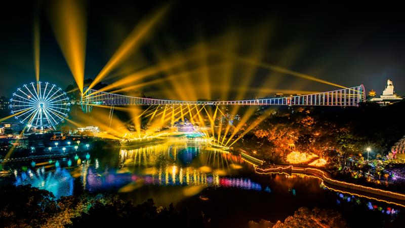 2021年是農(nóng)歷丑牛年,隱賢山莊特別推出了“與牛共舞”和小丑互動節(jié)目,景區(qū)選取了傳統(tǒng)文化里具有勤勞實(shí)干品質(zhì)的“?!睘殚_年使者,讓大家與可愛的萌牛共舞,再配上幽默搞笑的小丑與游客互動,貼合“丑牛”的新年主題。“魔幻孔雀谷”是以孔雀谷的多彩靜謐的環(huán)境為背景,由國內(nèi)知名魔術(shù)師現(xiàn)場表演近景魔術(shù),比熒幕觀賞更有逼真和神秘的效果?!帮L(fēng)情加勒比”將在加勒比民族舞臺上演云南佤族特色舞蹈,讓東莞游客不出遠(yuǎn)門就能體驗(yàn)到異域風(fēng)情。“璀璨之夜”是在隱賢山莊的網(wǎng)紅橋——3D玻璃橋演繹瀑布燈光秀,空中七彩燈光閃耀,與隱賢湖水交相輝映,猶如置身唯美的天上街市。“鵲橋浪漫”是隱賢山莊專門為有情人預(yù)備的一份節(jié)日禮物,在喜鵲的簇?fù)砗鸵魳返陌樽嘞?,他們從鵲橋的兩端緩緩走向?qū)Ψ?,將中華民族流傳千年的牛女相會的愛情故事由神話變成現(xiàn)實(shí)。