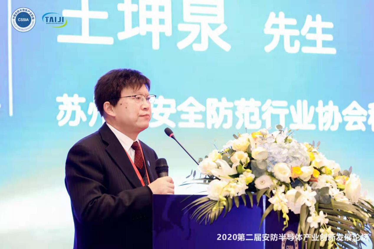 本屆論壇聯(lián)合國內(nèi)外安防與半導體主流企業(yè),推動中國安防半導體產(chǎn)業(yè)持續(xù)有序規(guī)范發(fā)展。全國安防協(xié)會合作互助聯(lián)盟首席顧問、公安部裝財局原副局長陶軍生,法國歐洲科學院榮譽院士、全國安防協(xié)會合作互助聯(lián)盟理事長、中國安防半導體產(chǎn)業(yè)聯(lián)盟主席楊金才,蘇州工業(yè)園區(qū)高端制造與國際貿(mào)易區(qū)產(chǎn)業(yè)發(fā)展局局長楊熠,蘇州市安全技術(shù)防范行業(yè)協(xié)會秘書長王坤泉,深圳市芯片行業(yè)協(xié)會秘書長吳征,臺灣資深半導體專家、中國安防半導體產(chǎn)業(yè)聯(lián)盟專家顧問、臺灣亞太高科技產(chǎn)業(yè)發(fā)展促進會副會長馮明憲,太極半導體(蘇州)有限公司董事長孫鴻偉等領導及嘉賓出席此次論壇。