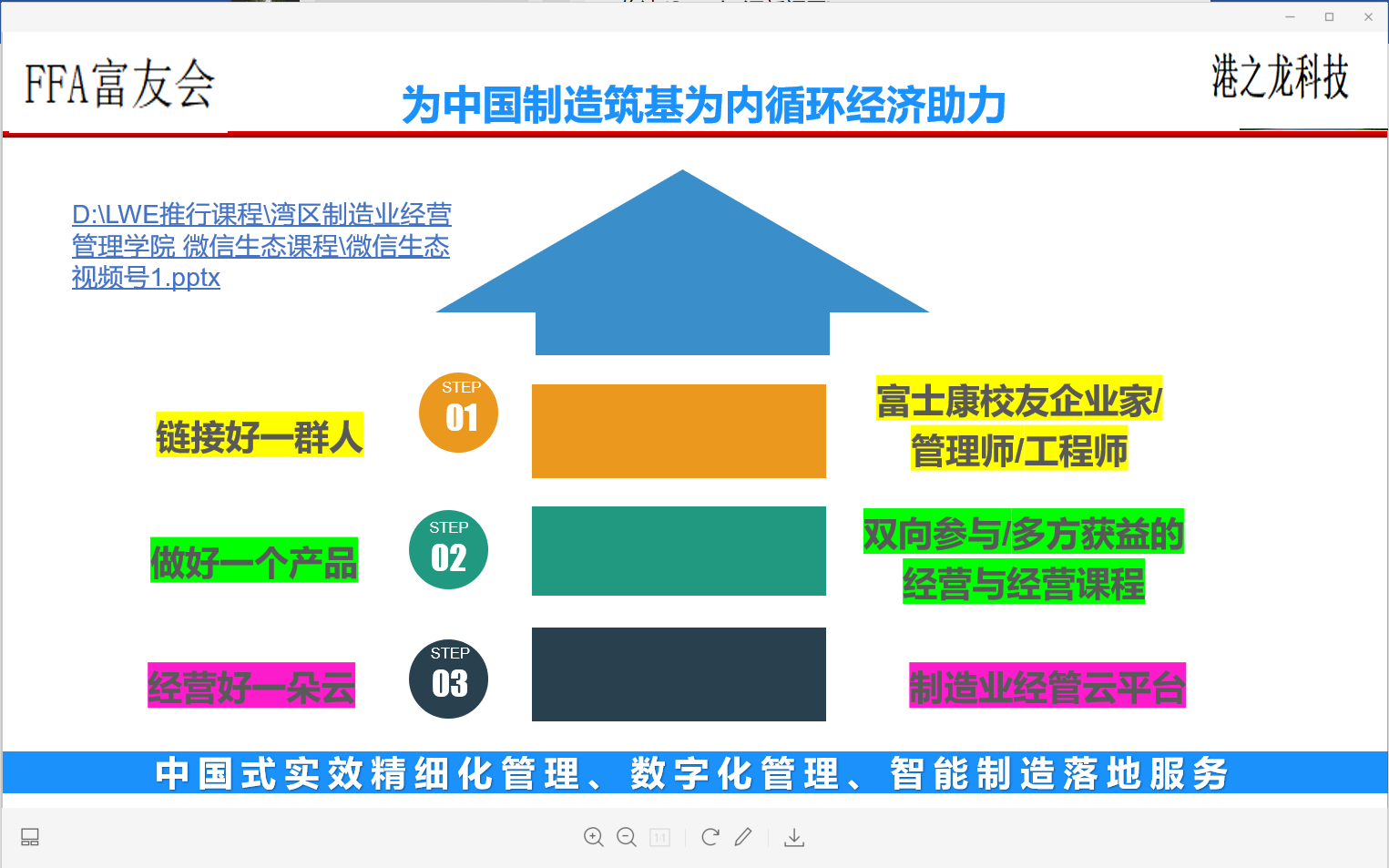 灣區(qū)制造先進力生產(chǎn)學(xué)院(籌)院長謝啟祥分享了利用富士康工生品經(jīng)四大管制系統(tǒng)為中小企業(yè)帶來天翻地覆變化的個個生動的案例,現(xiàn)場為富友創(chuàng)業(yè)項目“湖南懷化子民專業(yè)種植合作社”作了戰(zhàn)略規(guī)劃梳理,經(jīng)營策略調(diào)整,與湖南富友分會合作開發(fā)的“懷化高山白玉枇杷抗疫茶項目”也將與2021年在深圳懷化兩地落地生根。