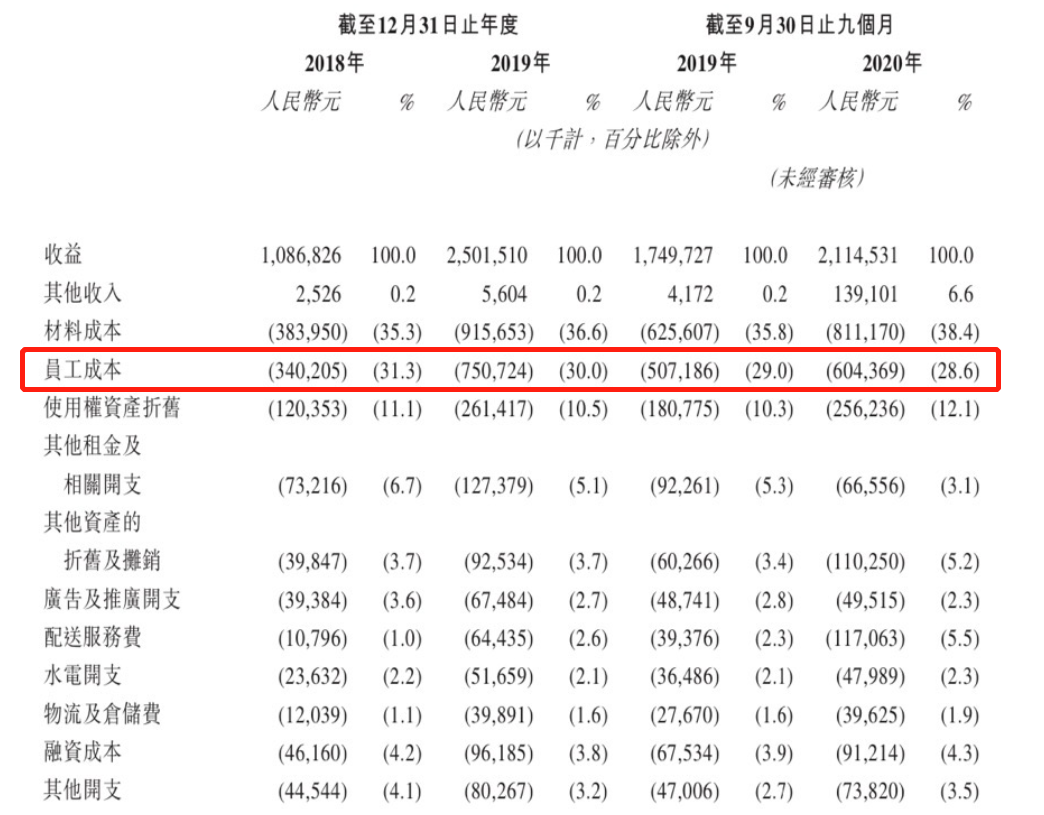 大眾網(wǎng)2021年3月18日訊 2021年,新式茶飲行業(yè)邁入了新階段。疫情加速了行業(yè)的優(yōu)勝劣汰,尾部商家經(jīng)歷“關(guān)店潮”,頭部品牌則憑借過(guò)硬品質(zhì)及優(yōu)質(zhì)服務(wù)等綜合實(shí)力獲得消費(fèi)者的認(rèn)定,并帶動(dòng)行業(yè)良性發(fā)展。其中,廣受消費(fèi)者和資本市場(chǎng)追捧的頭部品牌奈雪的茶,更于今年2月向港交所遞交招股書(shū),翻開(kāi)了新式茶飲行業(yè)里程碑式的一頁(yè)。值得注意的是,招股書(shū)顯示,奈雪的茶人力成本占比僅次于原料成本位居第二,最高達(dá)到了31.3%,再度驗(yàn)證了其打造高品質(zhì)服務(wù)體驗(yàn)的初心和堅(jiān)持。