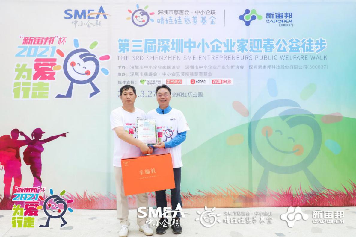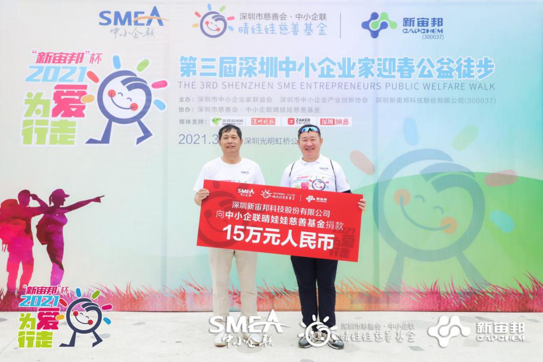 第三屆“為愛行走”活動(dòng)的愛心冠名企業(yè)-中小企聯(lián)副會(huì)長、深圳新宙邦科技股份有限公司董事長覃九三向中小企聯(lián)晴娃娃慈善基金捐款15萬元人民幣。