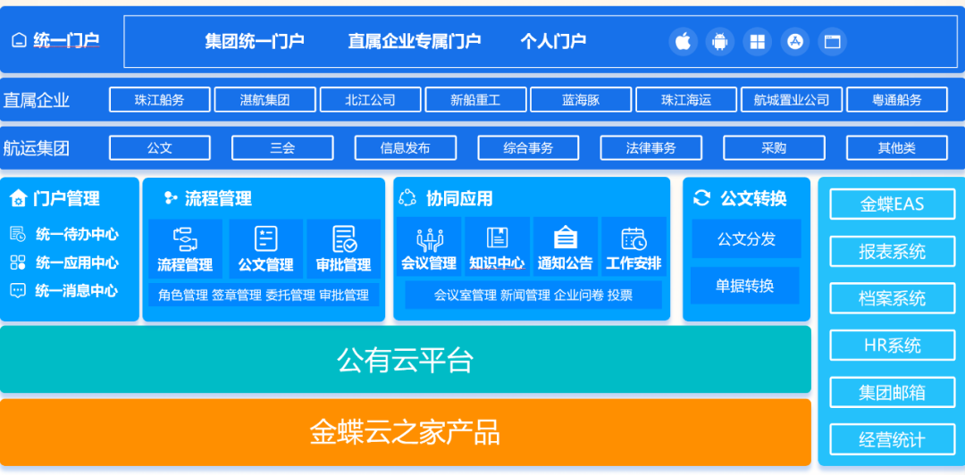 作為大型綜合性國企,廣東航運集團現(xiàn)有直屬企業(yè)8家,擁有全資、控股、參股及代理水路客運港口13家,經(jīng)營和管理96艘粵港澳高速客船。伴隨經(jīng)營規(guī)模的發(fā)展、技術迭代、應用場景深入,其信息化需要一個可以覆蓋集團協(xié)同應用場景的綜合辦公平臺,而集團原有的OA已經(jīng)無法滿足航運的持續(xù)發(fā)展需要。