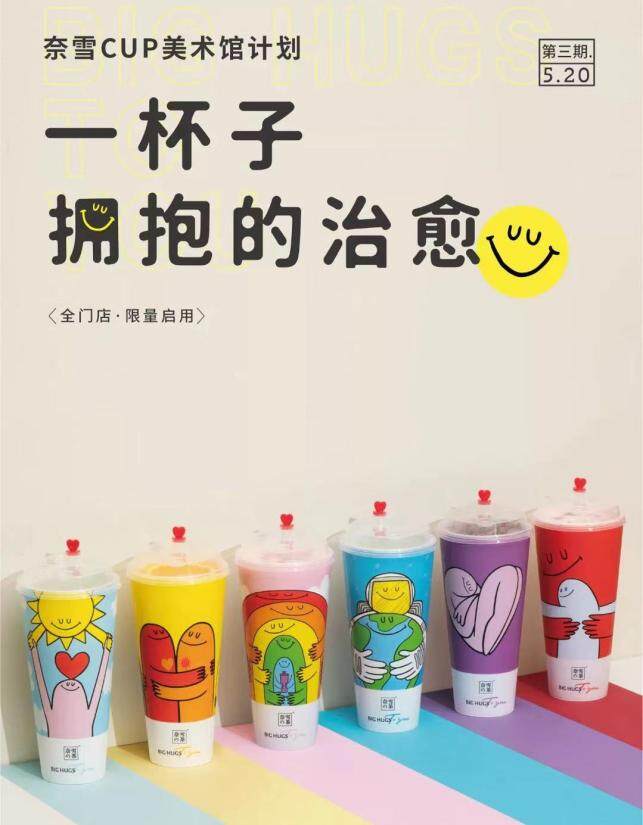 沒有財大氣粗的“品牌集郵”,也沒有投機(jī)取巧的抖機(jī)靈,奈雪似乎一直都深諳情感營銷的法門,過往也不乏優(yōu)質(zhì)案例。筆者印象最深的是“CUP美術(shù)館計劃”中的“瑞獸杯”和“抱抱杯”。前者是在2020與2021新舊年相交之際推出的,以茶飲杯為載體推出六款意頭極好的瑞獸,寓意“瑞獸相伴時來運(yùn)轉(zhuǎn)”,與消費(fèi)者新年新氣象的希冀不謀而合。