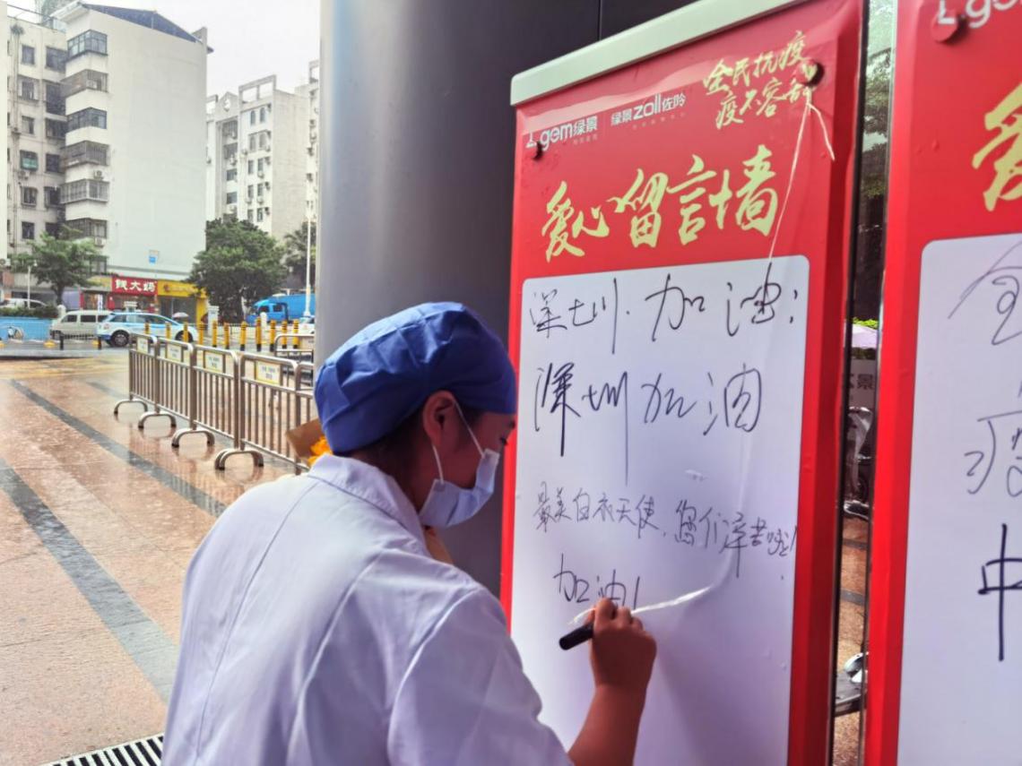 下梅林社區(qū)健康服務(wù)中心的護(hù)士小姐姐們,也在中午換崗的間隙,來到了活動(dòng)現(xiàn)場挑選美食。護(hù)士小姐姐們非常高興地表示,在暴雨天不用等外賣,就可以享受暖心的美味午餐,可以留出更多的時(shí)間,回到崗位工作,繼續(xù)“戰(zhàn)疫”!其中還有一位可愛的護(hù)士小姐姐為給自己加油打氣,在愛心留言墻上,寫下了“加油!我們是最棒的!”