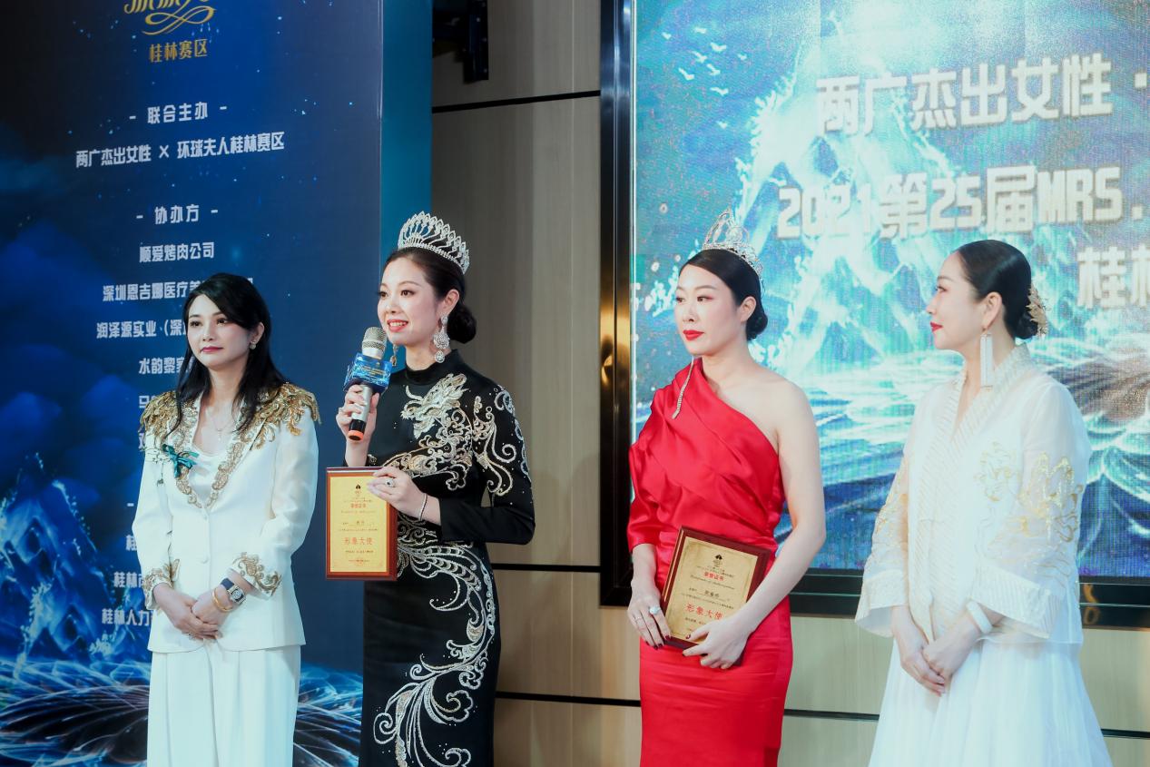 活動現場除了多位嘉賓的熱情致辭分享,同時還舉行了“2021第25屆MRS.GLOBE環(huán)球夫人大賽桂林賽區(qū)組委會成員授牌儀式”。