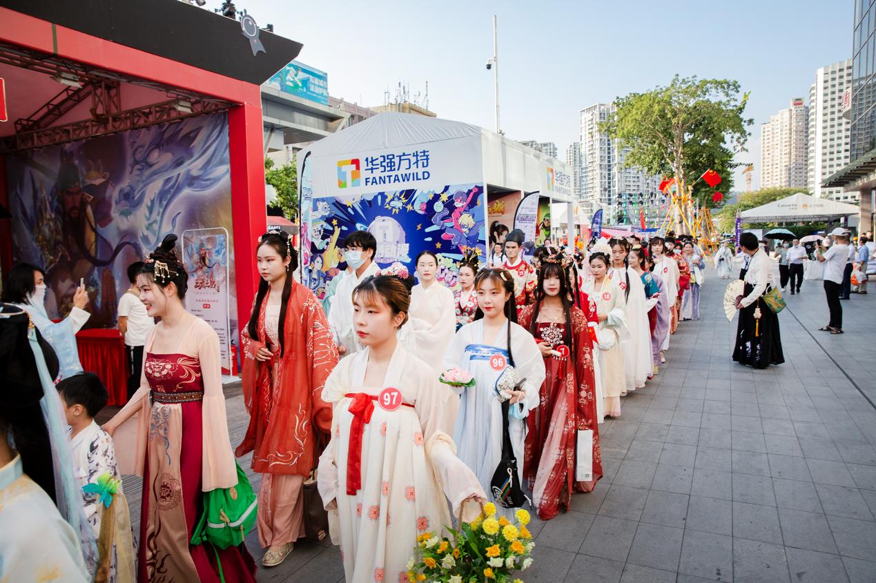 為了提升夜間經濟業(yè)態(tài),節(jié)展期間電玩節(jié)組委會在每天的16時至21時共計舉辦了三十余項不同類型的賽事活動,包括COSPLAY大賽、紅白歌會、國風國潮大賽、“第四屆王者榮耀全國大賽城市賽”“英雄聯盟 ·金鏟鏟之戰(zhàn)線下體驗派對”、主街游戲競技場、COSPLAY巡游、漢服巡游、國風走秀等。同時還邀請知名COSPLAY團、人氣COSER熊祁、唯安、組合844樂隊、七朵家族舉辦了專場見面會和簽售會,吸引了大量觀眾駐足圍觀,臺上臺下熱情互動,掀起陣陣活動高潮,以沉浸式的體驗帶動新消費,打造深圳夜間消費新地標。