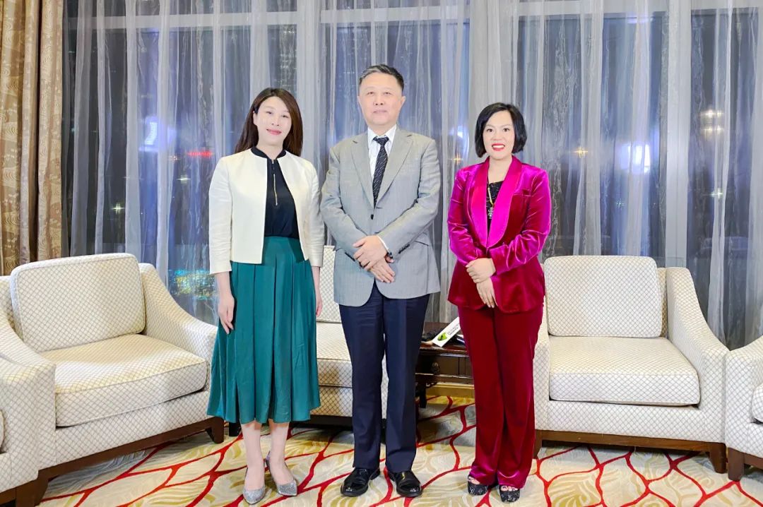 蘇州金合盛控股有限公司黨委書記、副董事長(zhǎng)、總經(jīng)理周瓊芳(左一);深圳市金融商會(huì)產(chǎn)業(yè)戰(zhàn)略顧問、深圳市共享金融研究院執(zhí)行院長(zhǎng)(中);深圳市金融商會(huì)執(zhí)行會(huì)長(zhǎng)朱雪櫻(右一)