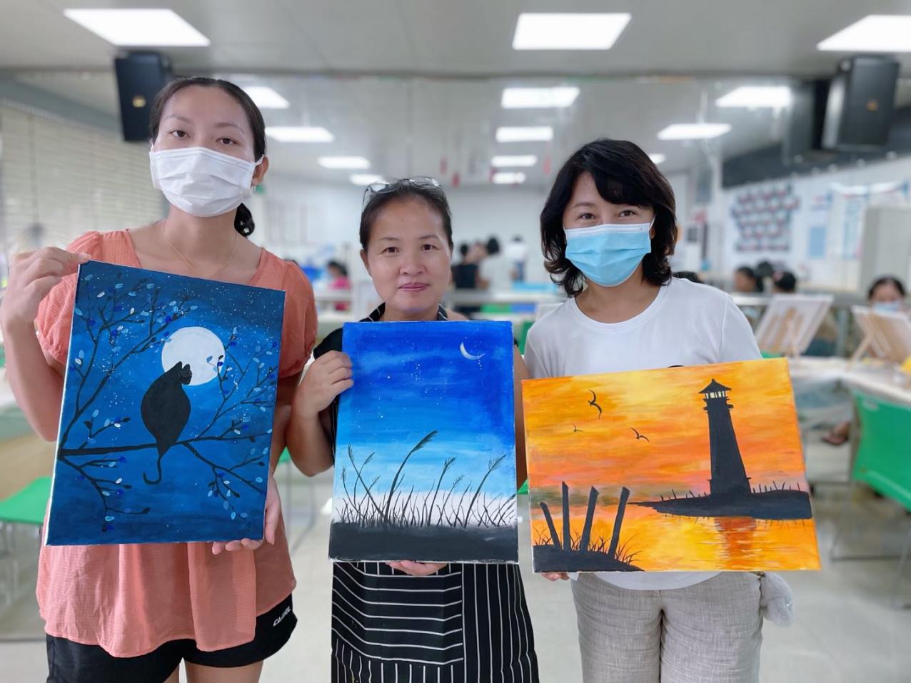 溫馨的環(huán)境,融洽的氣氛,專業(yè)的老師,友好的同伴,媽媽們度過了一個個美好的下午。盡管媽媽們都是零基礎(chǔ),但全情投入的專注,不僅釋放了壓力,更是打開了一扇通往油畫藝術(shù)的小窗。愛自己,愛生活,才能更好地愛家人,本次油畫班持續(xù)開展約兩個多月,媽媽們更好地享受屬于自己的油畫時間,學(xué)有所獲。