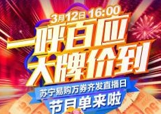 3月12日下午4點(diǎn),蘇寧“315全民煥新節(jié)萬(wàn)券齊發(fā)直播日”啟動(dòng)。